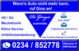 Willkommen bei De Giorgio Automobile Meisterwerkstatt Bochum – Ihrer zuverlässigen freien Werkstatt für Auto Reparatur, Inspektion und Service. Wir bieten Ihnen fachgerechte Wartung und schnelle Hilfe bei allen Fahrzeugproblemen. Vertrauen Sie auf unsere langjährige Erfahrung und modernste Technik, um Ihr Fahrzeug sicher und leistungsfähig zu halten. Kontaktieren Sie uns gerne für eine individuelle Beratung oder Terminvereinbarung.